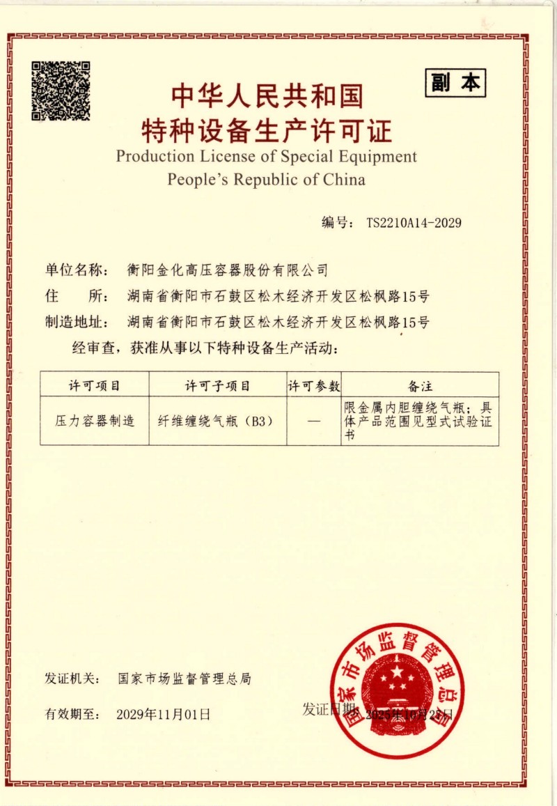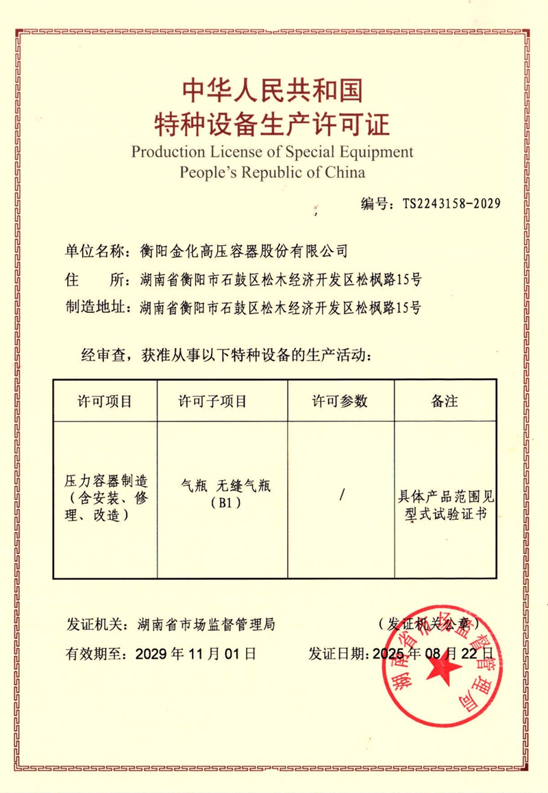 Copyright ©2019 衡陽金化高壓容器股份有限公司  地址:湖南省衡陽市石鼓區松木經濟開發區松楓路15号   備案号:湘ICP備19020863号   營業執照查閱